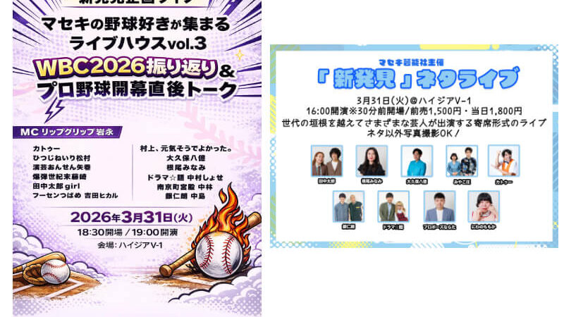 『新発見』ネタライブ&マセキの野球好きが集まるライブハウスvol.3 WBC2026振り返り& プロ野球開幕直後トーク【ブログ23日目】